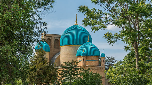 Llegada la mañana al aeropuerto internacional de Tashkent, la capital de Uzbekistán. Encuentro con nuestro guía local de habla española en el aeropuerto de Tashkent. Desayuno. Traslado al hotel a las 12:00. Visita al complejo Khasti Imam, las madrasas Barak Khan y Muyi Muborak, donde se conservan valiosos libros como el Corán de Usman (VII), la mezquita Tilla, el mausoleo Sheikh Kafal Shashi el mercado Chorsu. Almuerzo libre. Visita al museo de Artes Aplicadas y paseo por el Parque Amir Temur y la Plaza de la Independencia. Cena. Alojamiento en el hotel.