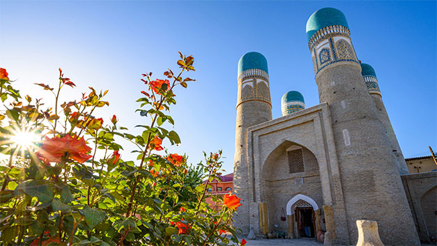 Desayuno. Viaje por la ciudad Bujara. Visitas la mezquita Magoki-Attari, el mercado medieval de joyeros Toki Sarrafon, el mercado de gorras-Toki Telpakfurushon, la Tim Abdullakhan, la madrasa Ulugbek y el complejo arquitectónico de Poyi Kalon, compuesto por 3 monumentos: el minarete Kalon, la madrasa Mir Arab y la Gran Mezquita. Almuerzo libre. Visita a los sitios históricos alrededores de la ciudad de Bujara: el complejo del Sufí Bakhouddin Naqshbandi, quien era gran sufí religioso de la región de Asia Central, el palacio de verano del emir de Bujara, Sitorai Mohi-Khosa y de la madrasa Chor Minor. Visita al complejo Labi Havuz (del siglo XVI), en una zona verde con árboles que rodean un pequeño estanque, y de la madrasa Nadir Divanbegi. Cena con espectáculo de bailes, canciones tradicionales y desfiles de modas en la madrasa Nadir Devanbegi. Alojamiento en el hotel.
